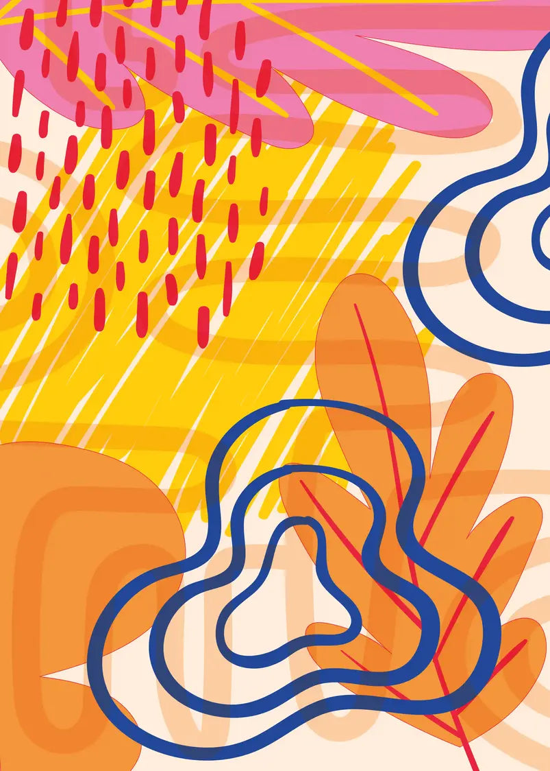 Bursting with playful energy, Rhythm of Color is a vibrant dance of shapes, lines, and movement. Bright yellows, bold blues, and warm earthy tones collide in a lively composition that feels spontaneous yet full of creative harmony. Each stroke and splash adds personality — making this piece a joyful reminder of how art can uplift any moment.