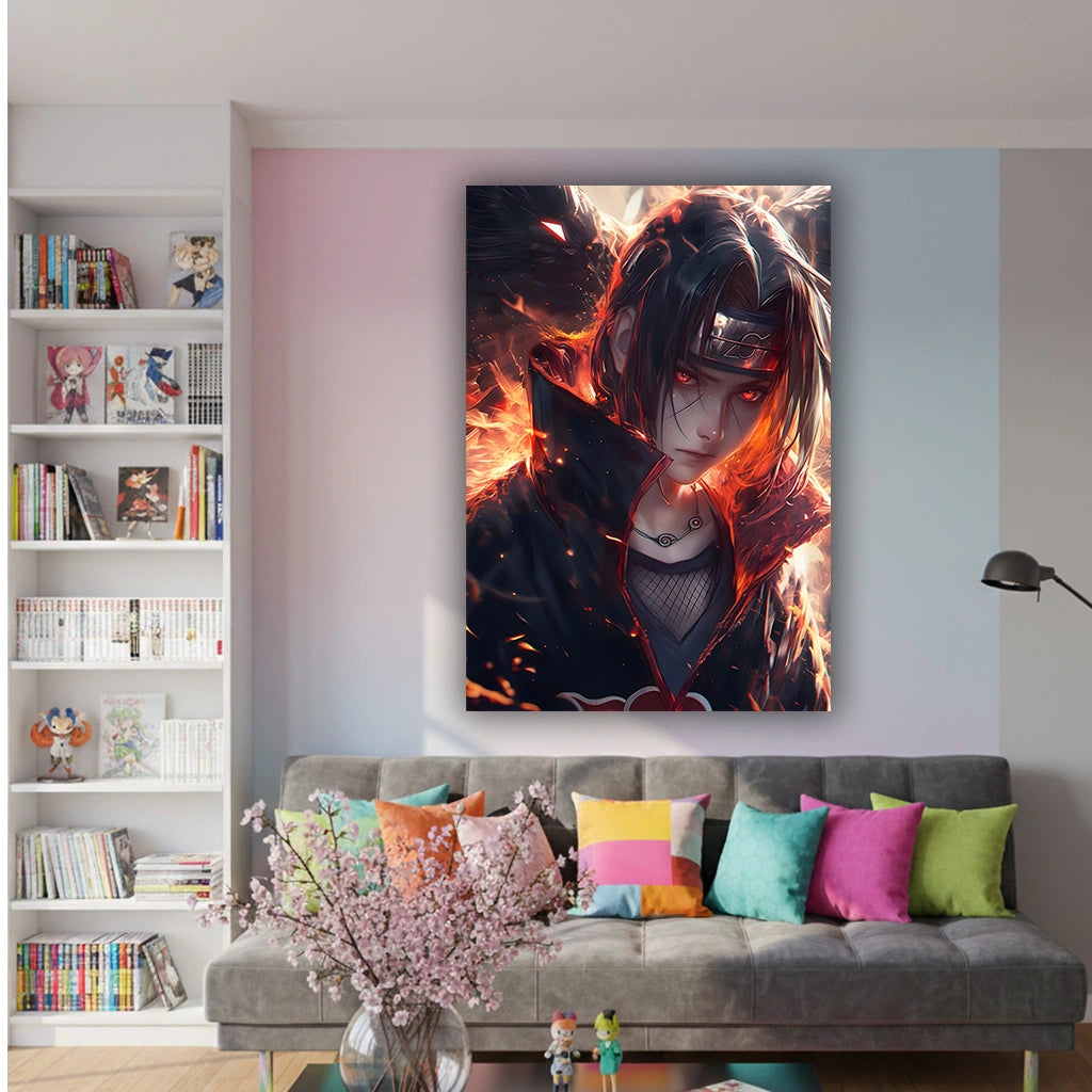 A lone shinobi emerges through embers and shadow, eyes burning with an unyielding intensity. Surrounded by living flame, the figure captures a moment of absolute focus—where pain, power, and purpose fuse into one unstoppable force.