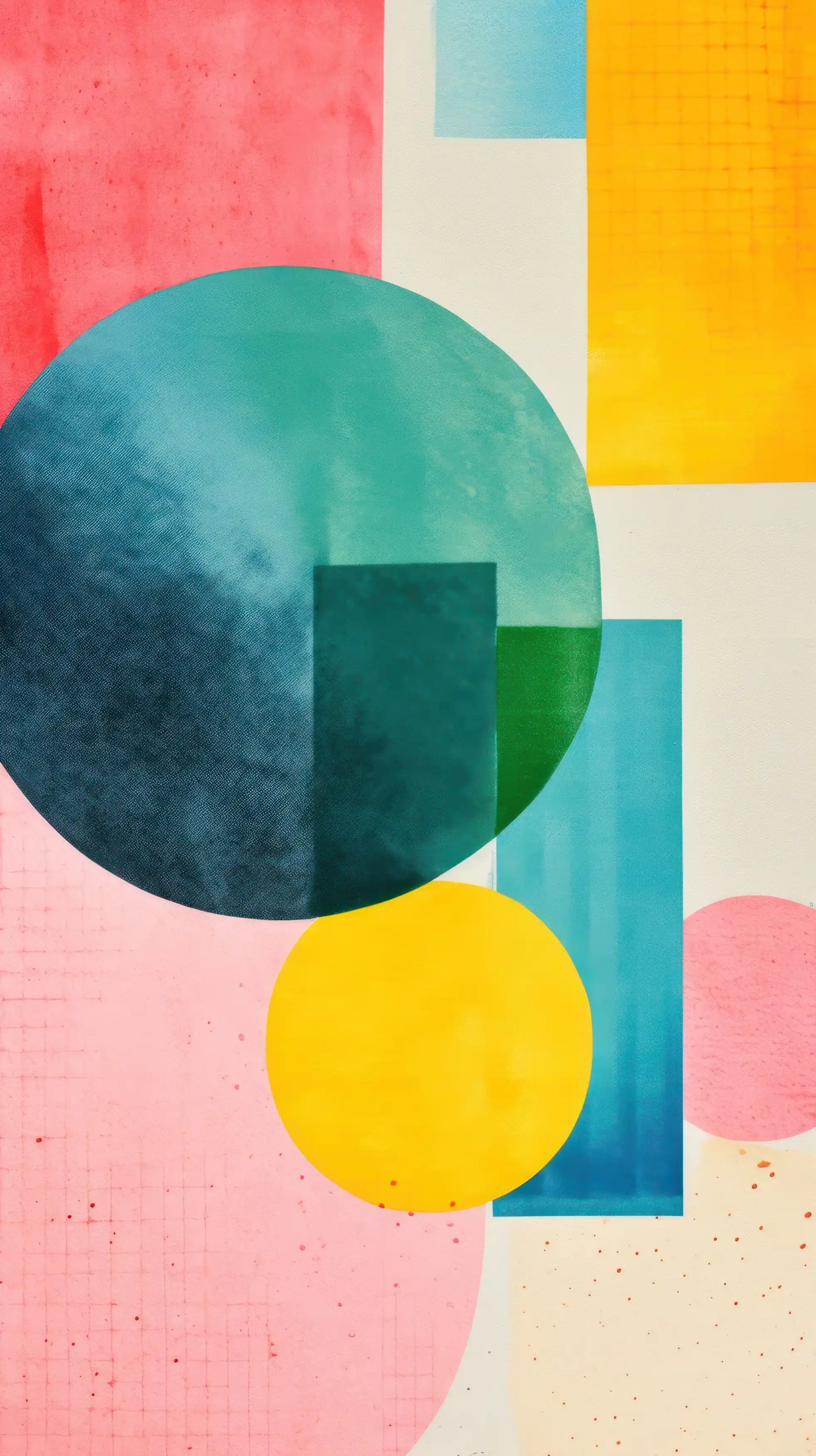 Playful shapes and vivid colors collide in this energetic abstract artwork. Bold circles, soft squares, and layered transparencies create a lively rhythm that instantly brightens any room. It’s a celebration of contrast — where geometry meets imagination and every shape sparks a moment of joy.